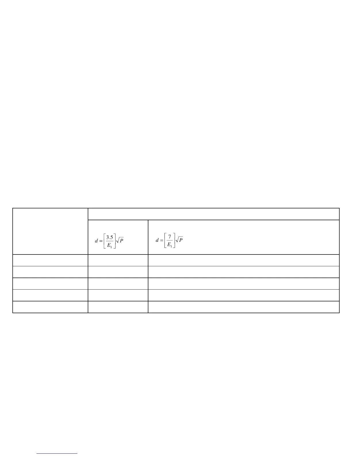 For transmitters rated at a maximum output power not listed above, the recommended separation distance d in metres (m)