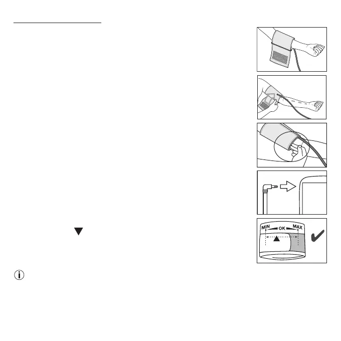 den Arm und schließen Sie den Klettverschluss. Die Manschette sollte so