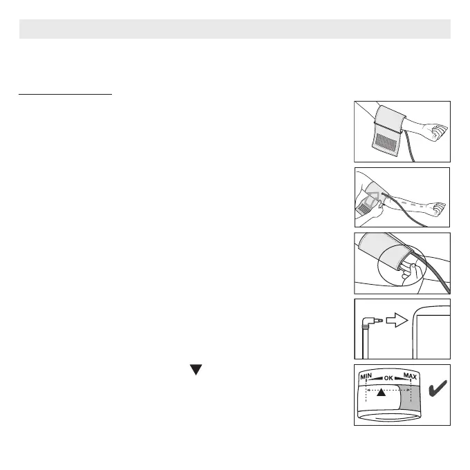 Manşet üst kola, alt kenarı dirseğin iç kısmının 2 – 3 cm üzerinde ve atardamarın
