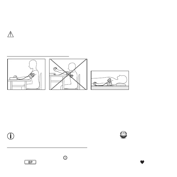You can take the measurement while sitting or lying. Always make sure that the cu is at heart level.