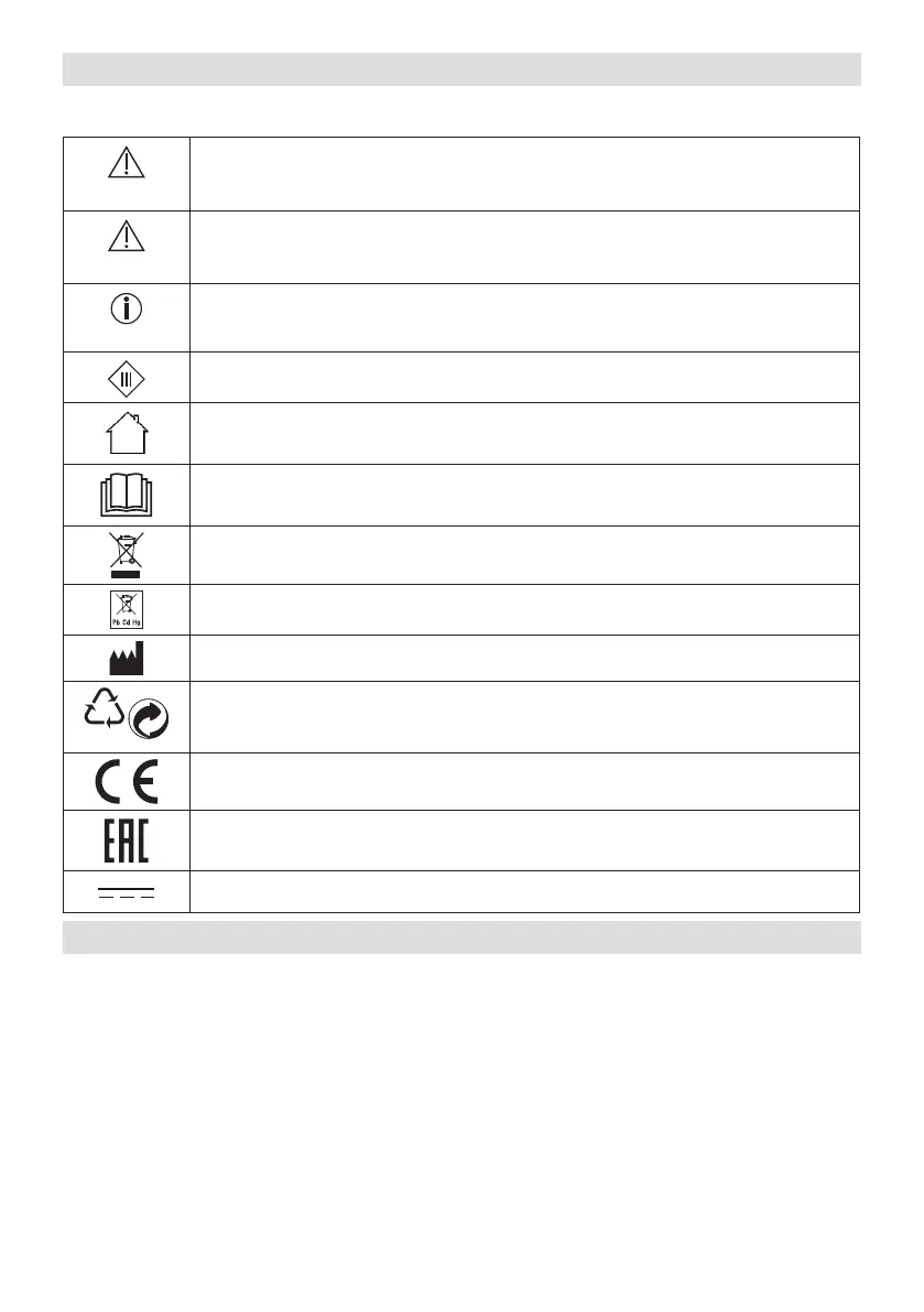 Auf dem Gerät, in der Gebrauchsanweisung auf der Verpackung und auf dem Typschild des Geräts werden folgende