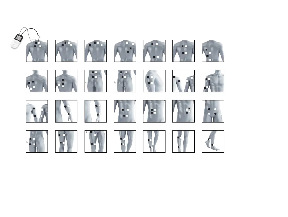posiciones ideales de los electrodos según la zona de aplicación elegida.