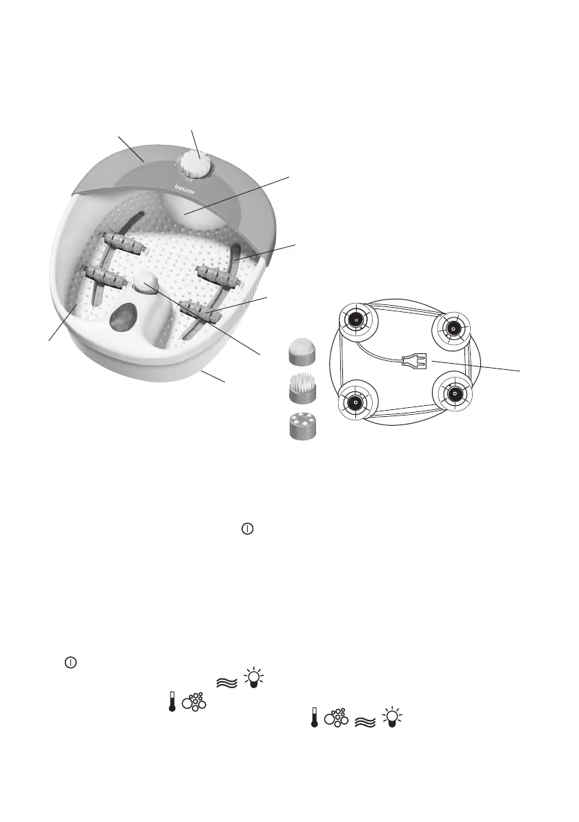 • Before plugging in the footbath fill it with warm water no higher than the level indicator (approx.