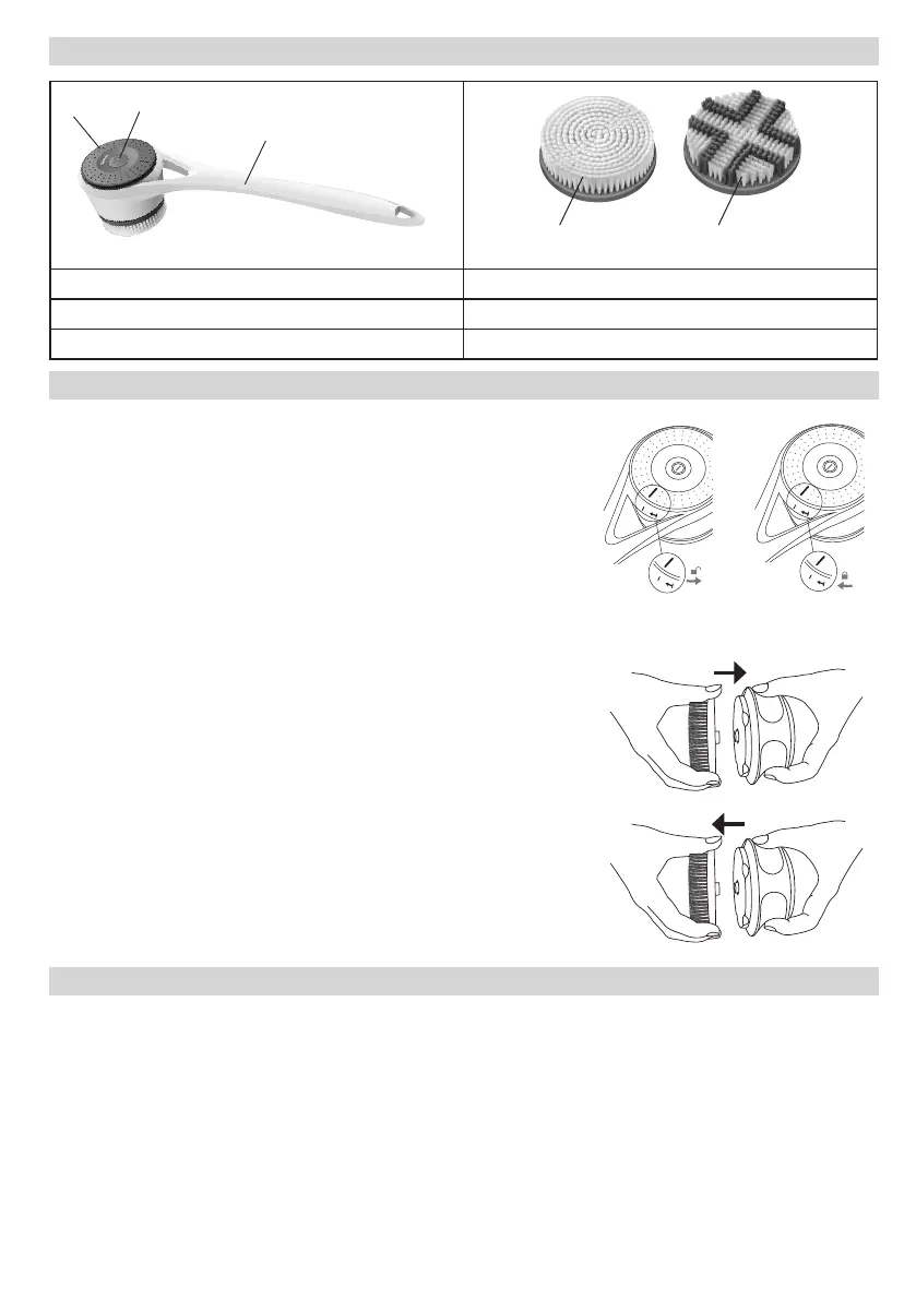 1. Insérez l’embout souhaité sur la brosse corporelle, jusqu’àl’entendre et
