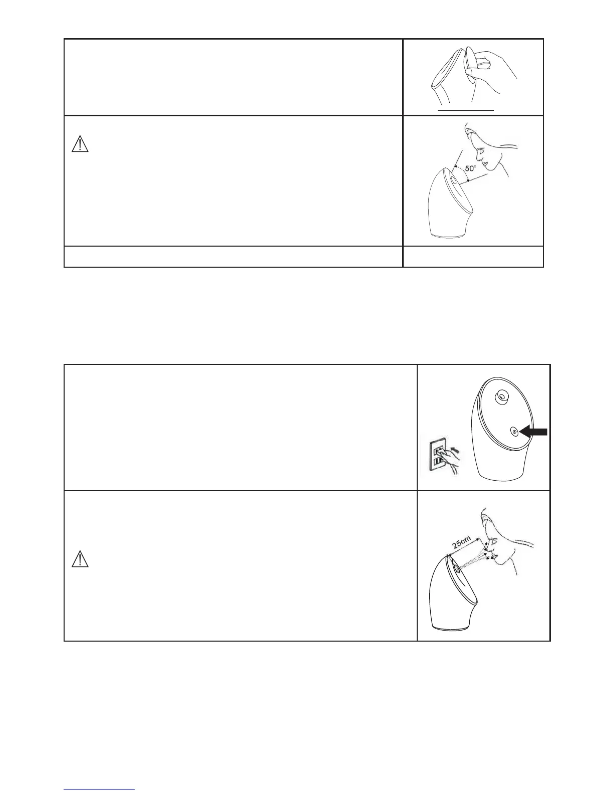 Ensure that your face does not get closer than 25cm to the nozzle.