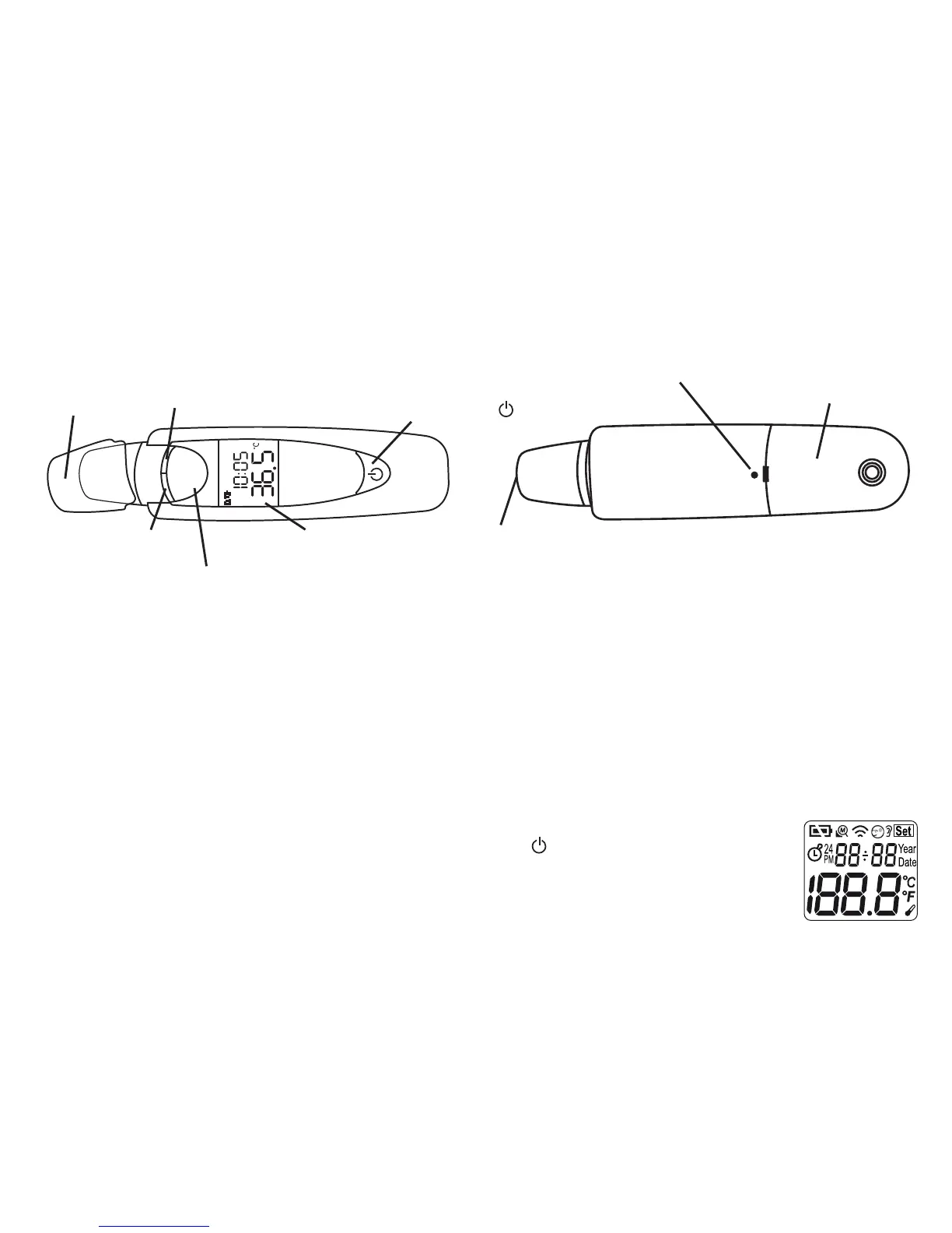 Remove the protective cap and switch on the thermometer with the “ ” button. After a short self-test