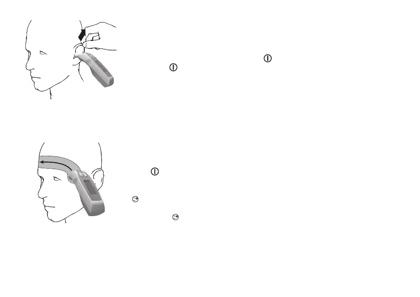 Forehead button and move the thermometer smoothly over the forehead to the other