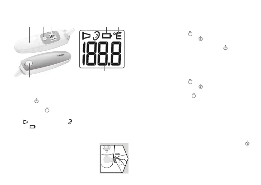 à piles. Le thermomètre auriculaire s’allume alors