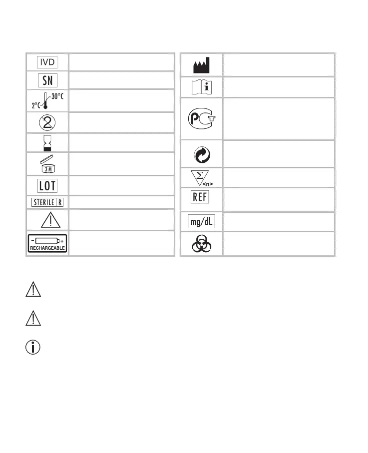 The symbols on the packaging, type plate of the blood glucose monitor and accessories represent