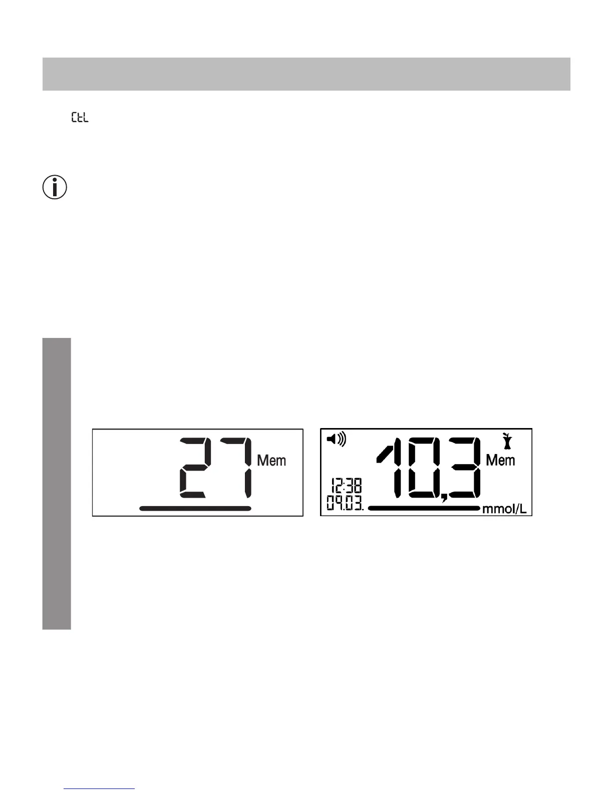 replaced by the most recent value. You can call up every individual measured blood glucose value.