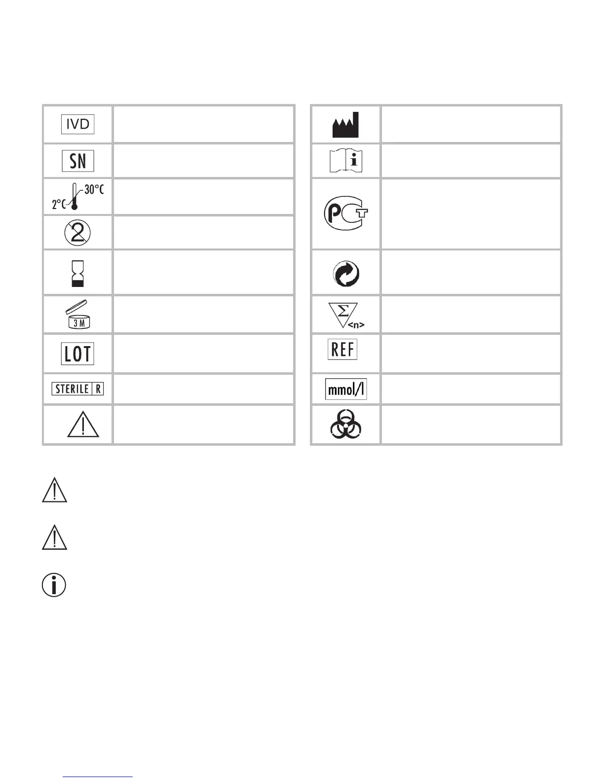 The symbols on the packaging, type plate of the blood glucose monitor and accessories represent