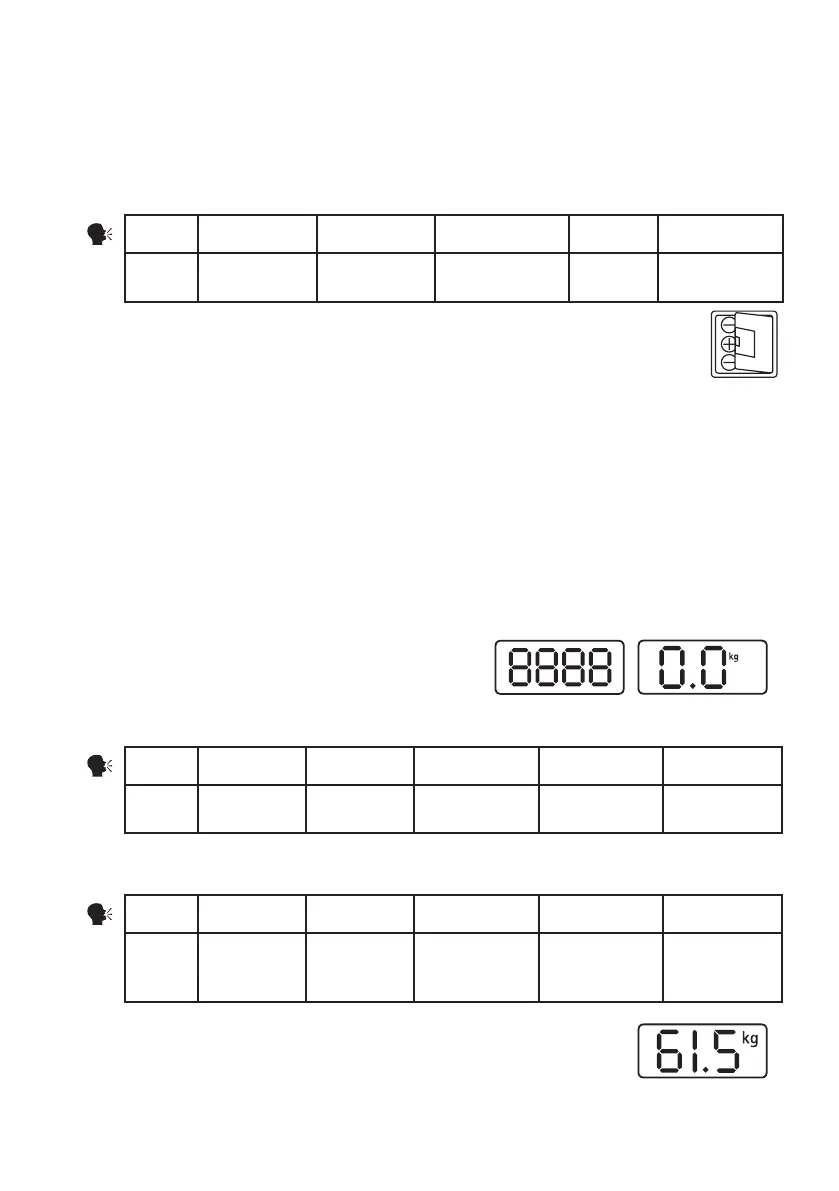 d’un “achage de changement de piles”. En cas d’utilisation de la balance avec des piles faibles, le