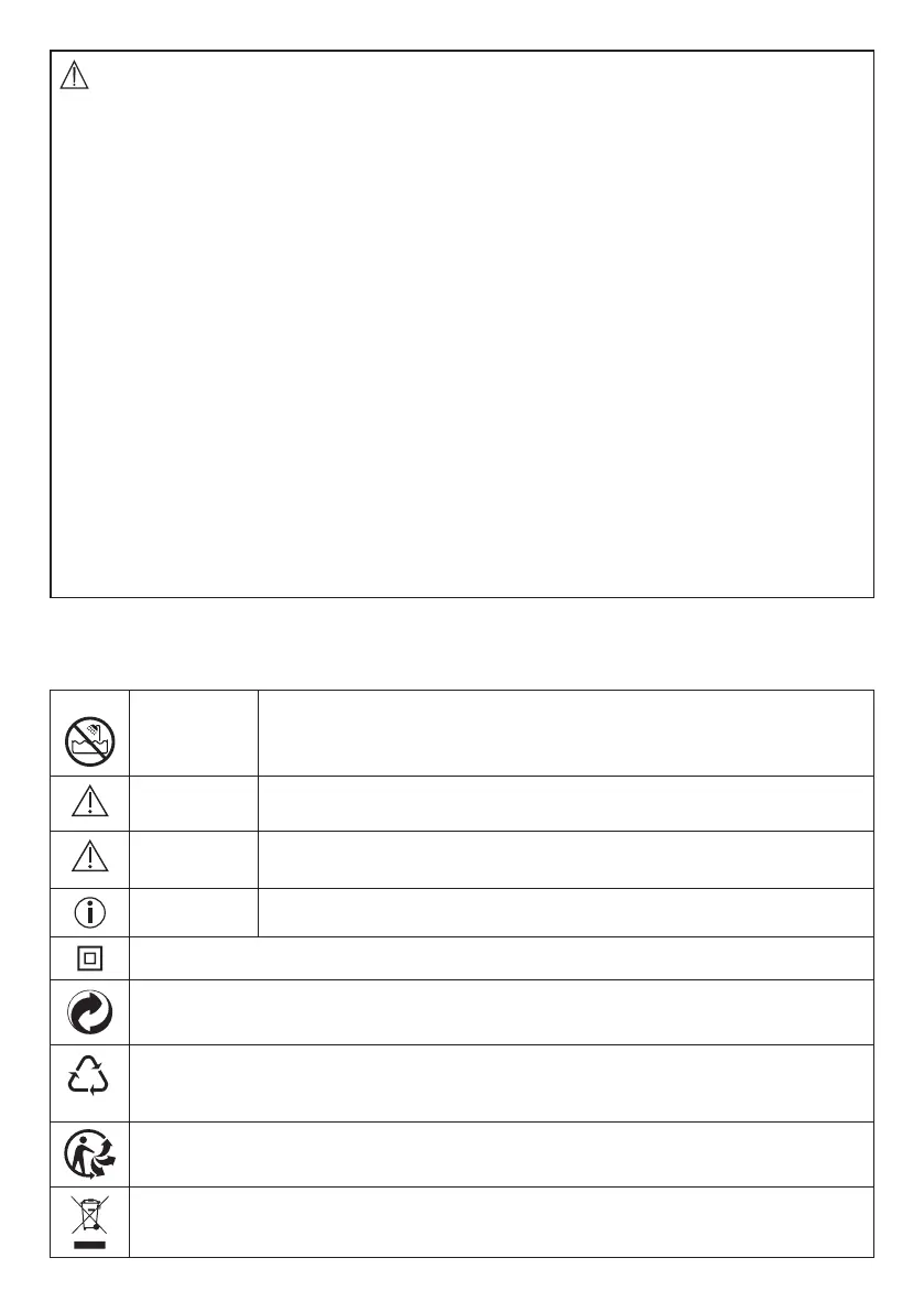 Laitteessa, sen käyttöohjeessa, pakkauksessa ja tyyppikilvessä käytetään seuraavia symboleita: