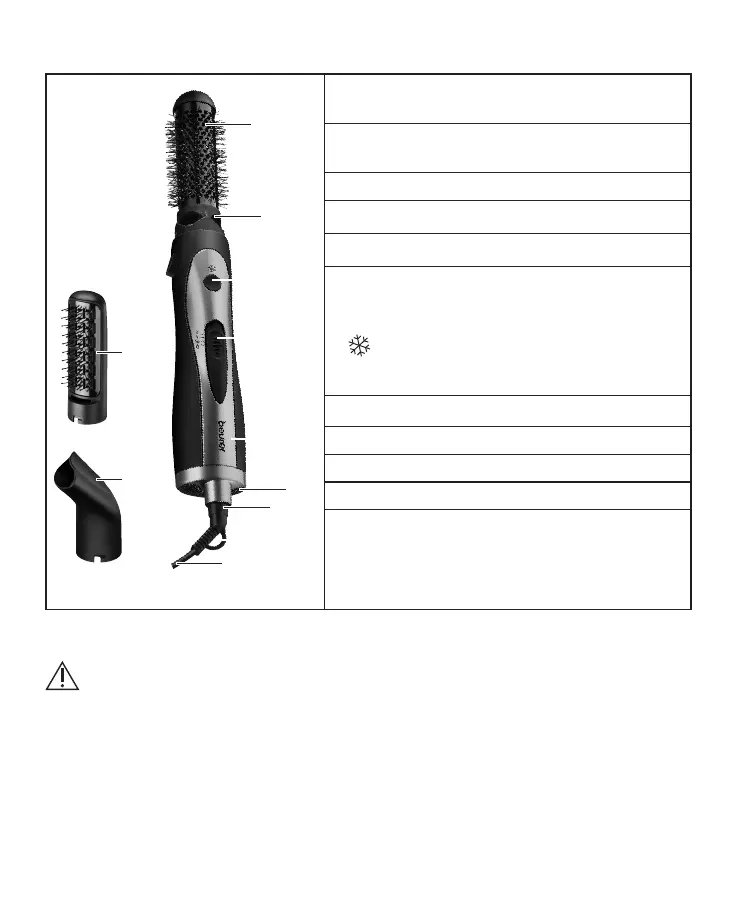 • Die Rundbürste [1], die Thermobürste [2] die Düse [3] und das Gerät können je nach Schalterstel