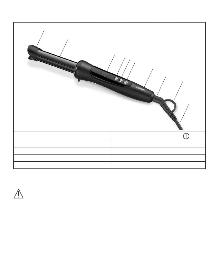 Las placas calentadoras [2] del rizador pueden calentarse mucho. Si está caliente, agarre el