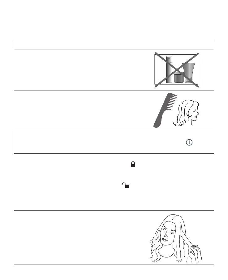 1. Przed użyciem falownicy dokładnie wysuszyć włosy.