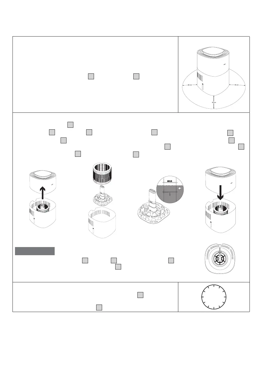 optage vand i 30 minutter, før luftfugteren tændes (vandniveauet kan