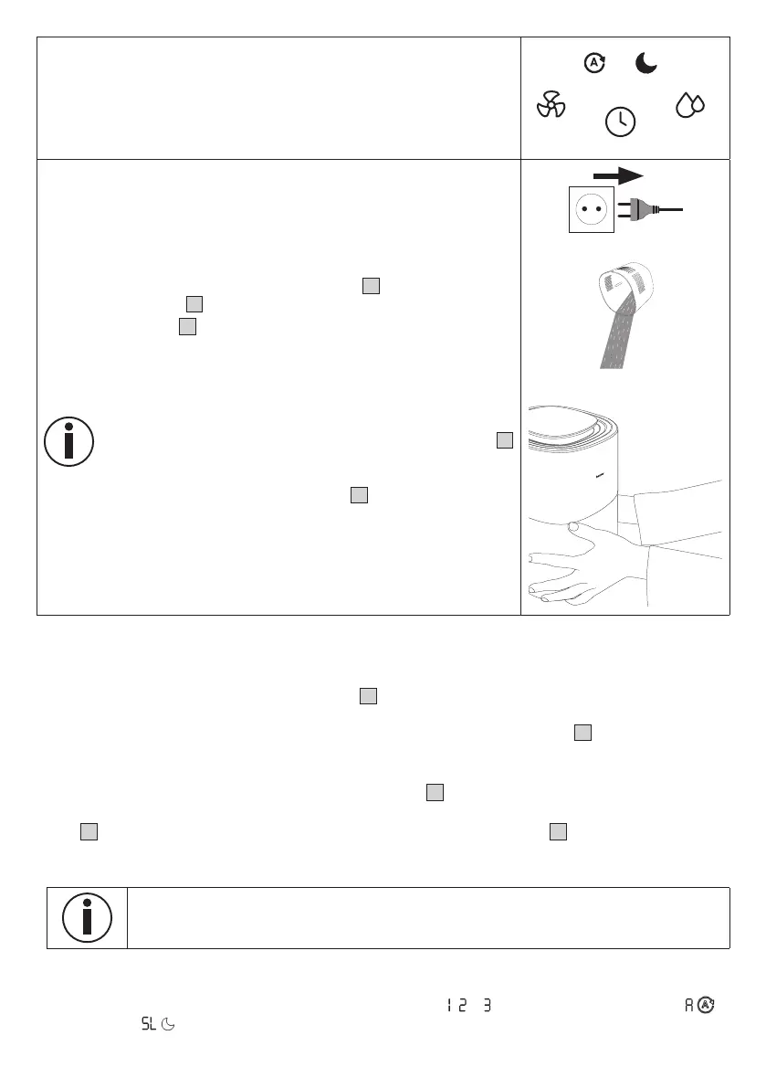 El humidifi cador de aire tiene tres velocidades de ventilador (, y ) y dos modos (modo AUTO y