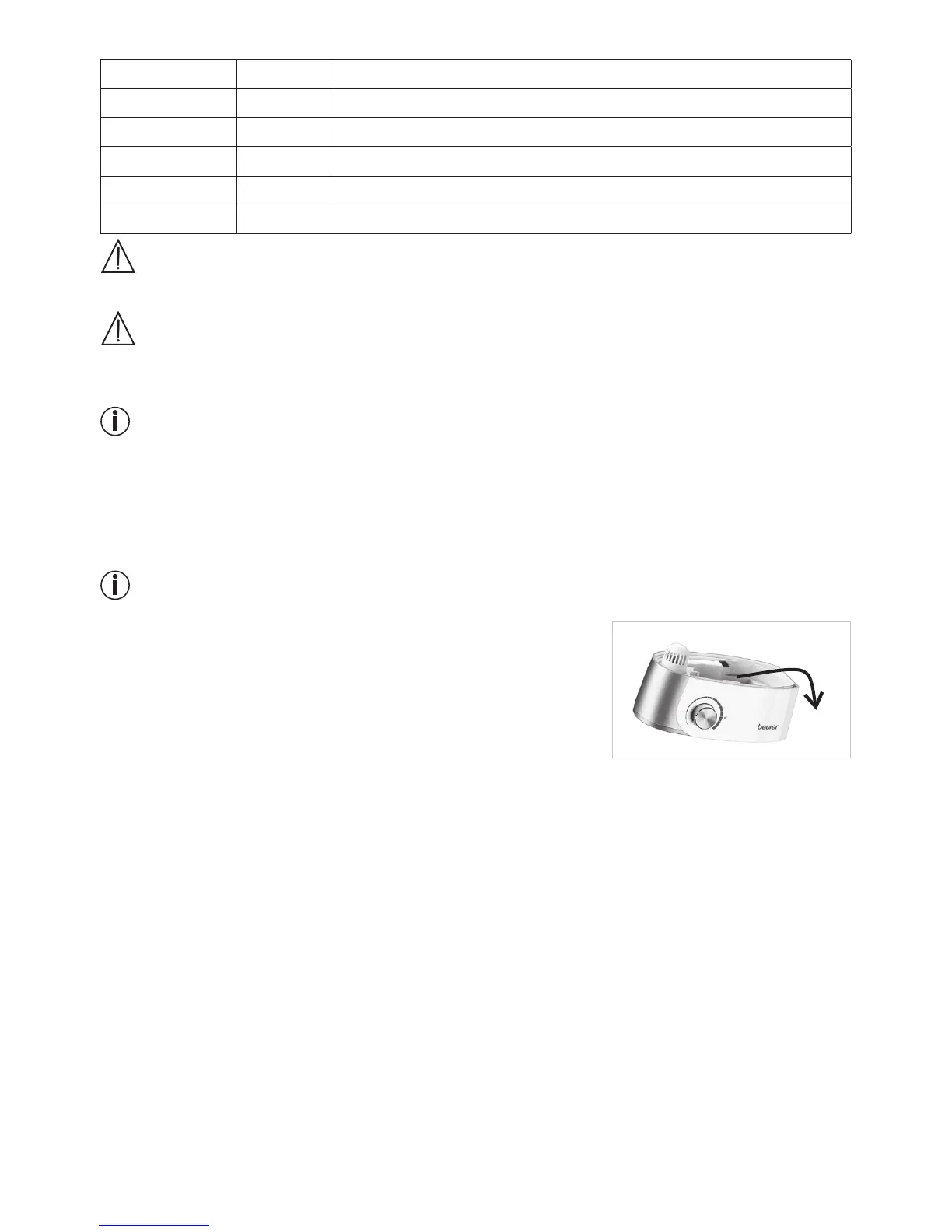 The water tank must be cleaned and the air humidifier completely emptied if the device has not been used