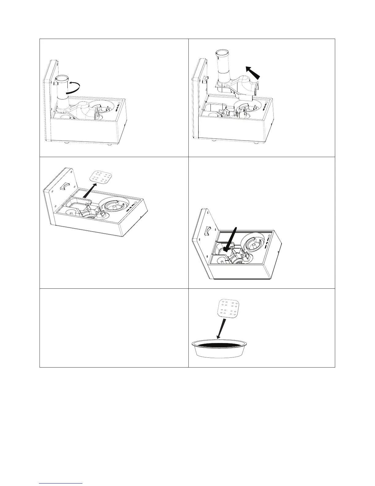 3) En caso necesario, retire la pastilla antical. 4) Limpie el cazo de evaporación con el cepillo de