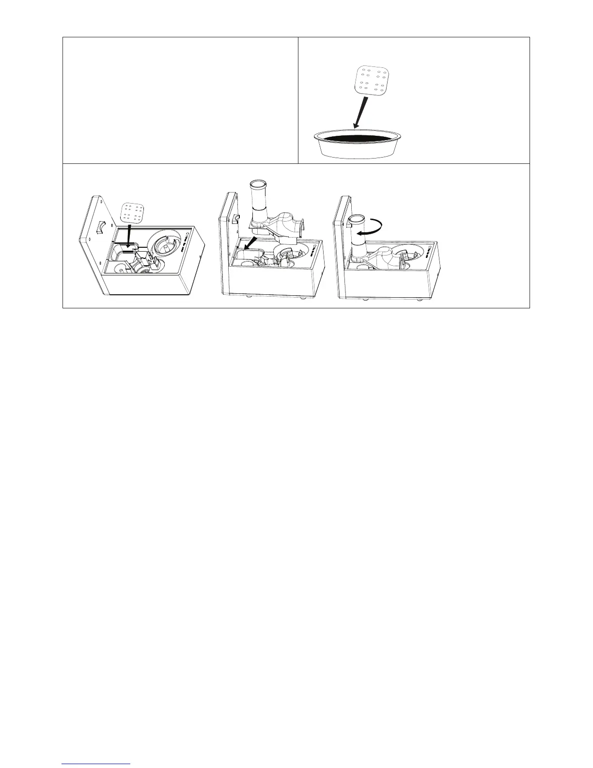 7) Inserire di nuovo il tampone anticalcare e rimontare la bocchetta di uscita dell'aria sulla base.