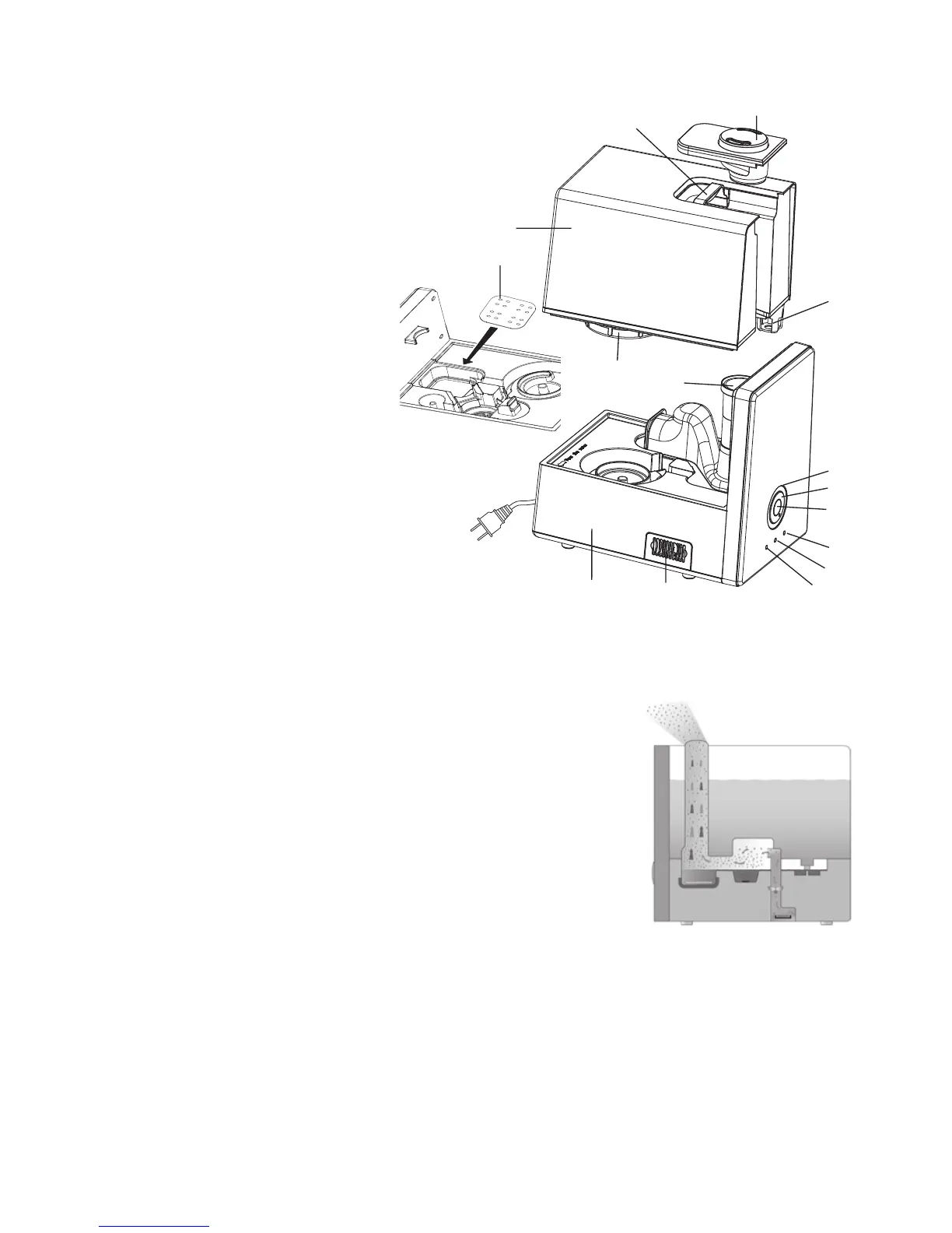 • Hazneye su doldurun, su haznesi maks. 6 litre alır, su seviyesi dıştan görünür.