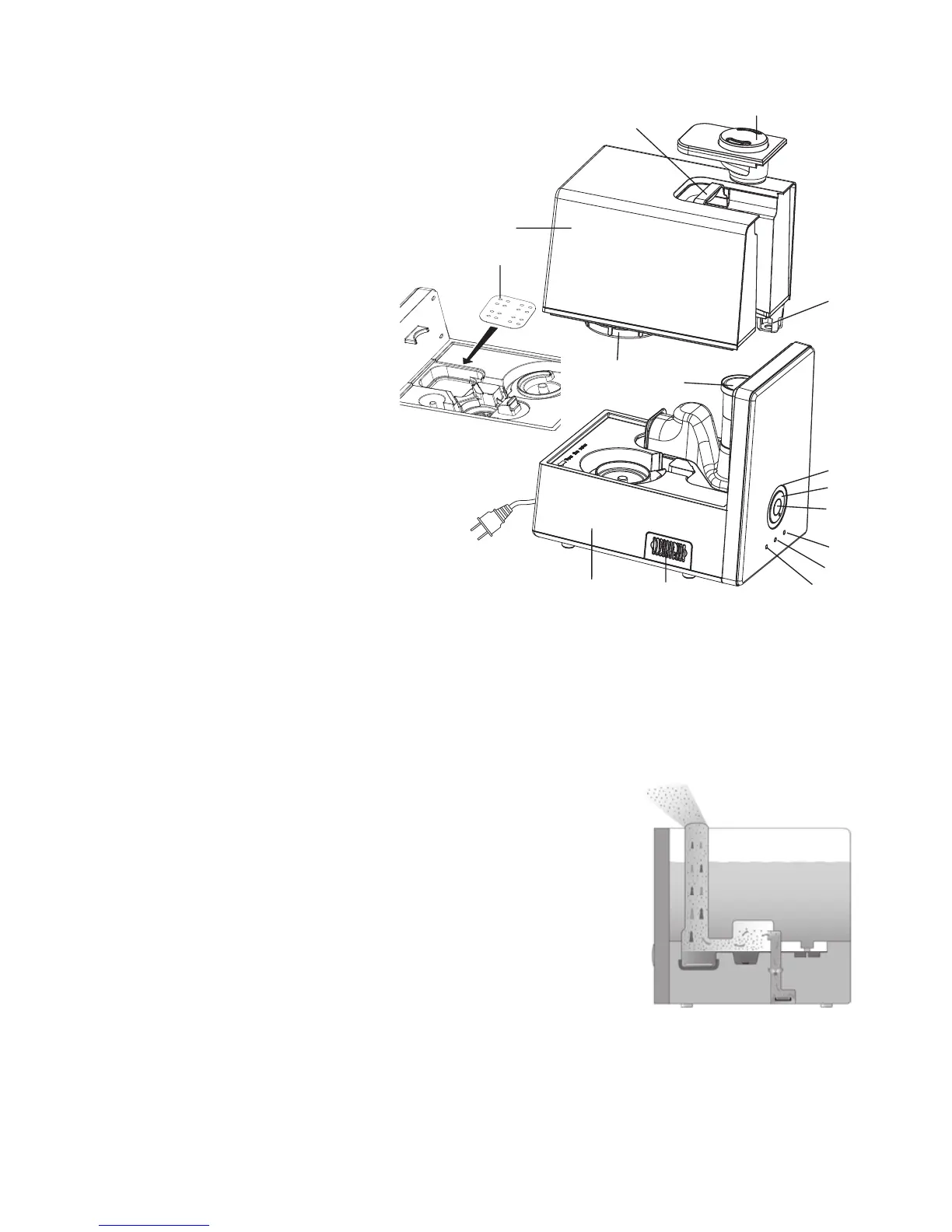• Чтобы заполнить резервуар, откройте навинчивающуюся крышку его на нижней поверхности.