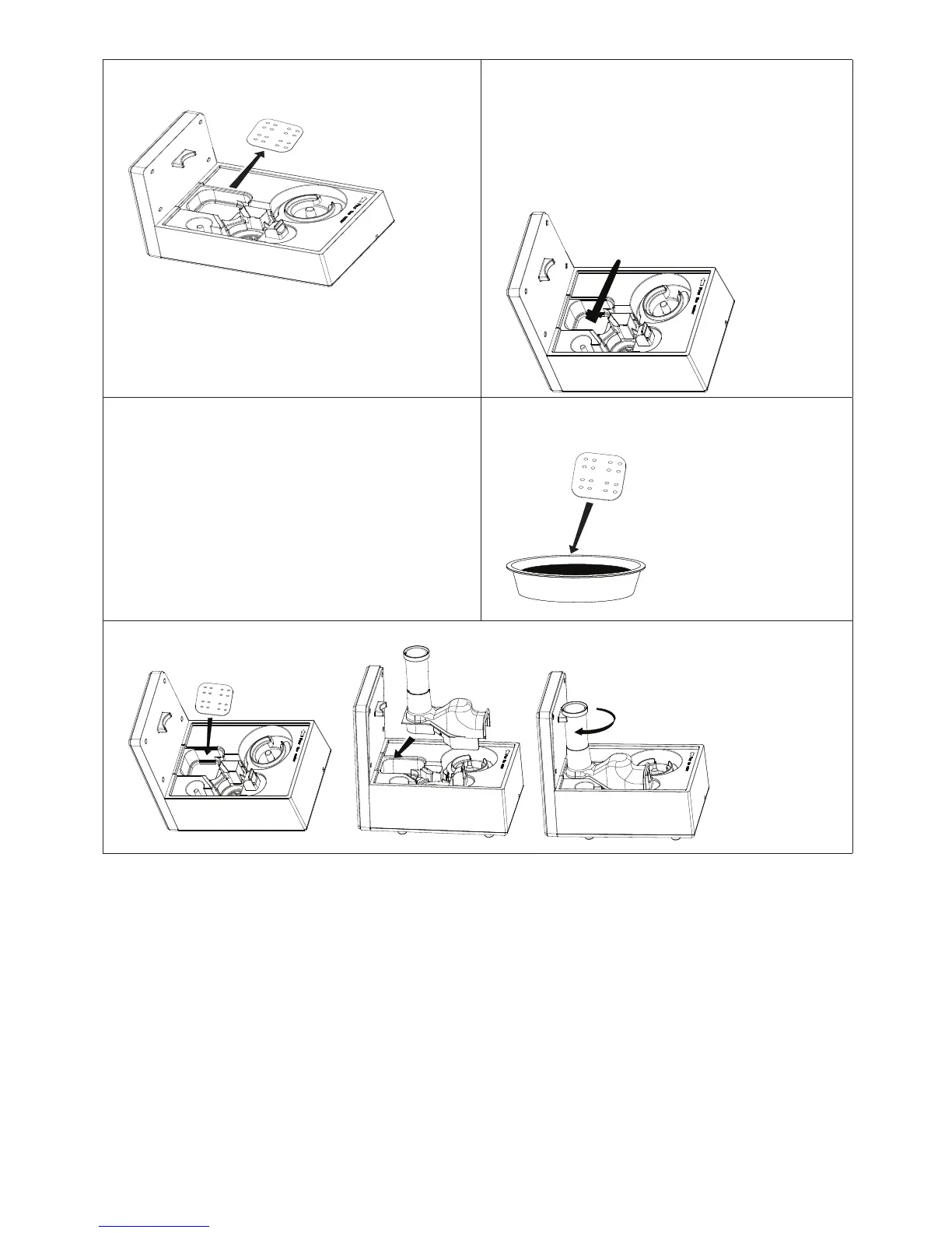 7) Wstawić wkładkę z powrotem i nasadzić wylot powietrza z powrotem na bazę.
