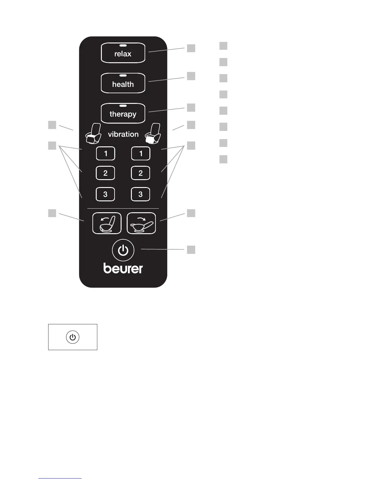 The LEDs signal the currently set massage programmes relax, health and therapy.