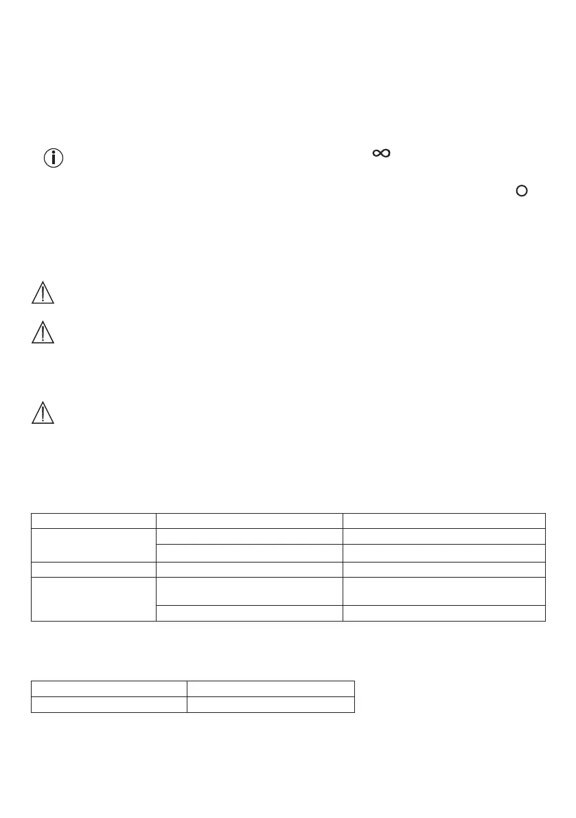 To set the exposure time to “Continuous operation”, set the switch to . The UV light will light up continu-