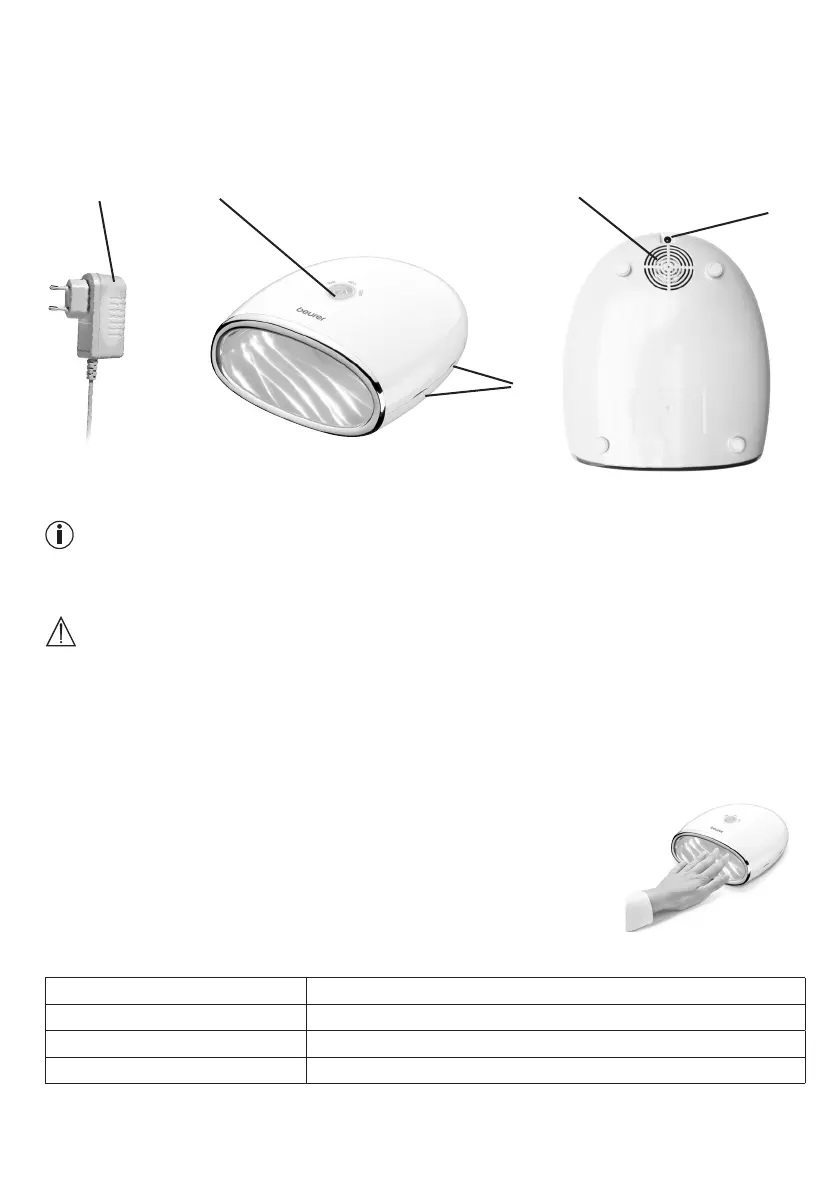 6� Pull the mains adapter out of the socket after each use� Allow the nail dryer to cool down completely�