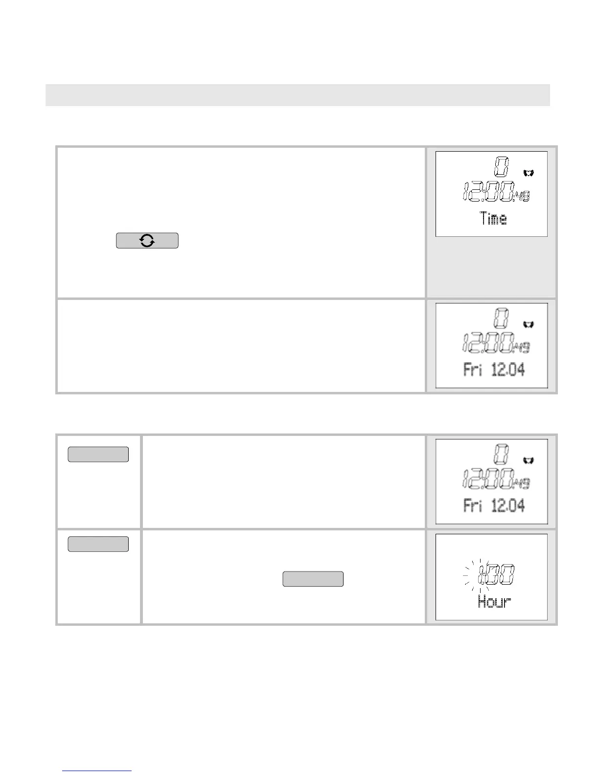 Set Time wird kurz angezeigt. Hour