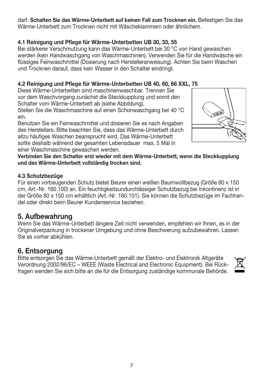 und das Wärme-Unterbett vollständig trocken sind.