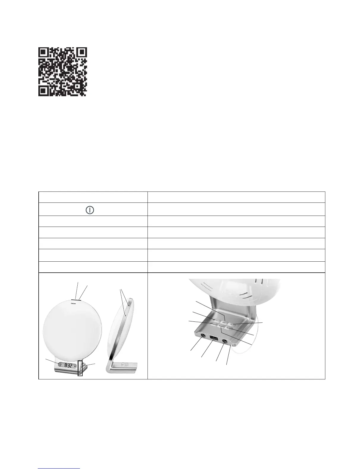 3 Touch sensor (for snoozing) 10 Mains part connection