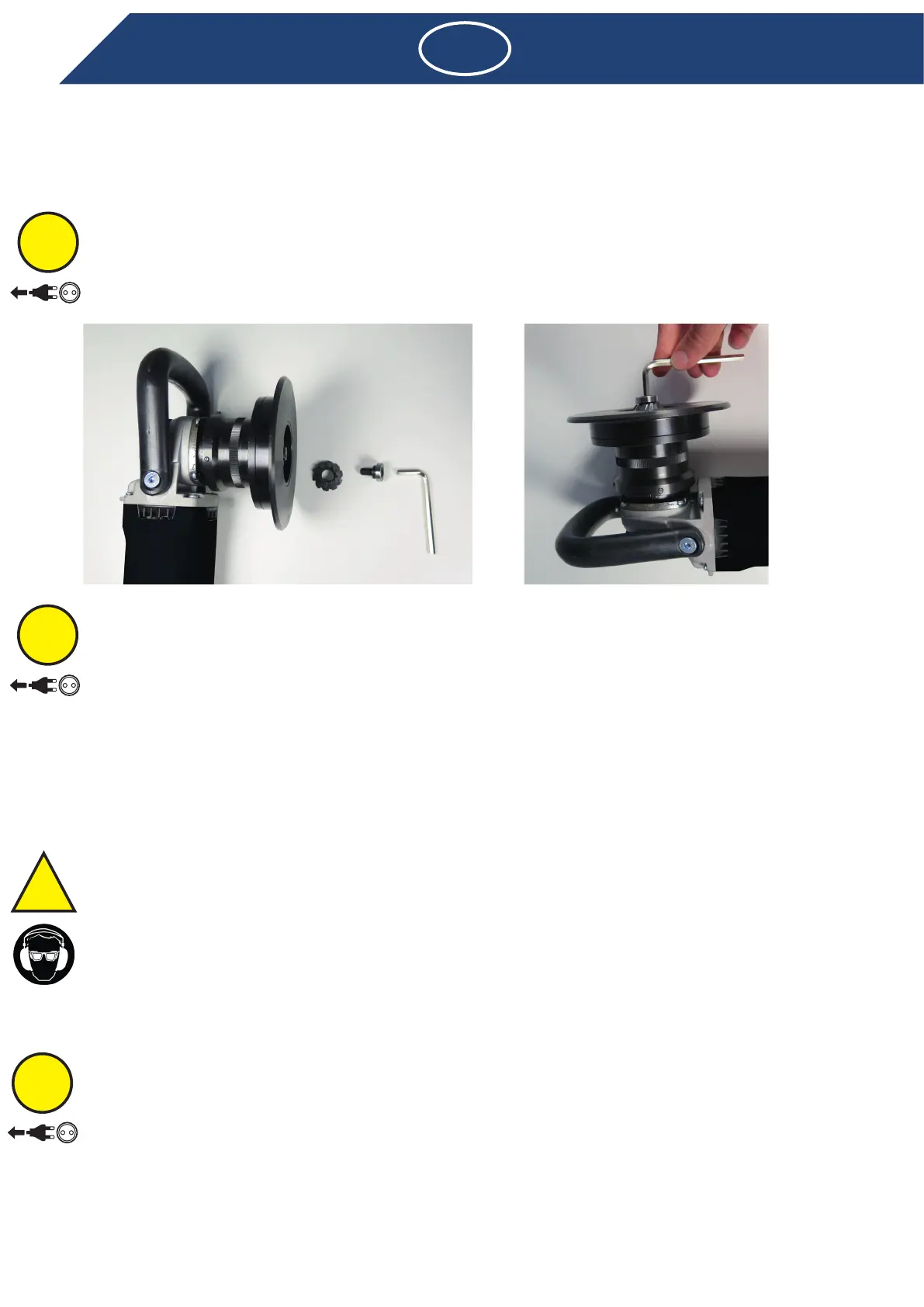 • Lock spindle by pressing the orange locking button on the back of the gearbox. Use the hex wrench (5 mm) to