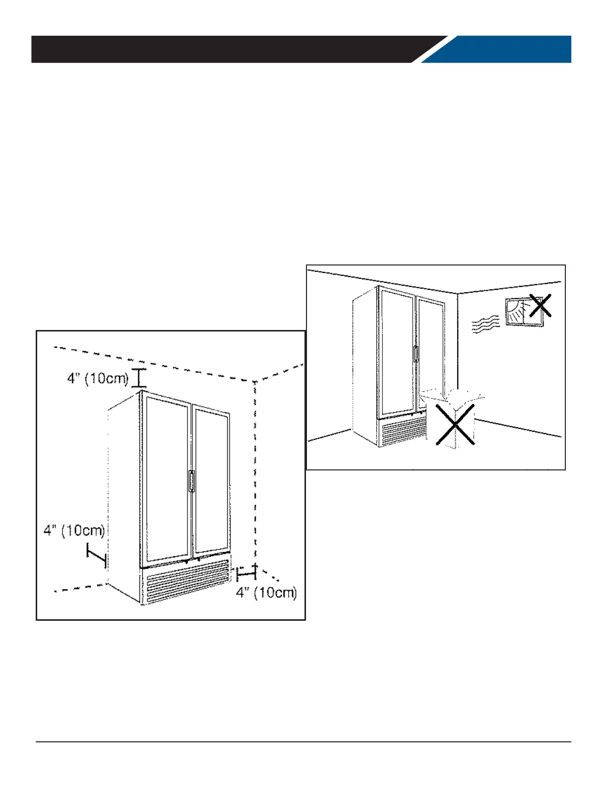 • For proper operation, equipment must have a minimum distance of 4" (10 cm) from walls and other structures on the