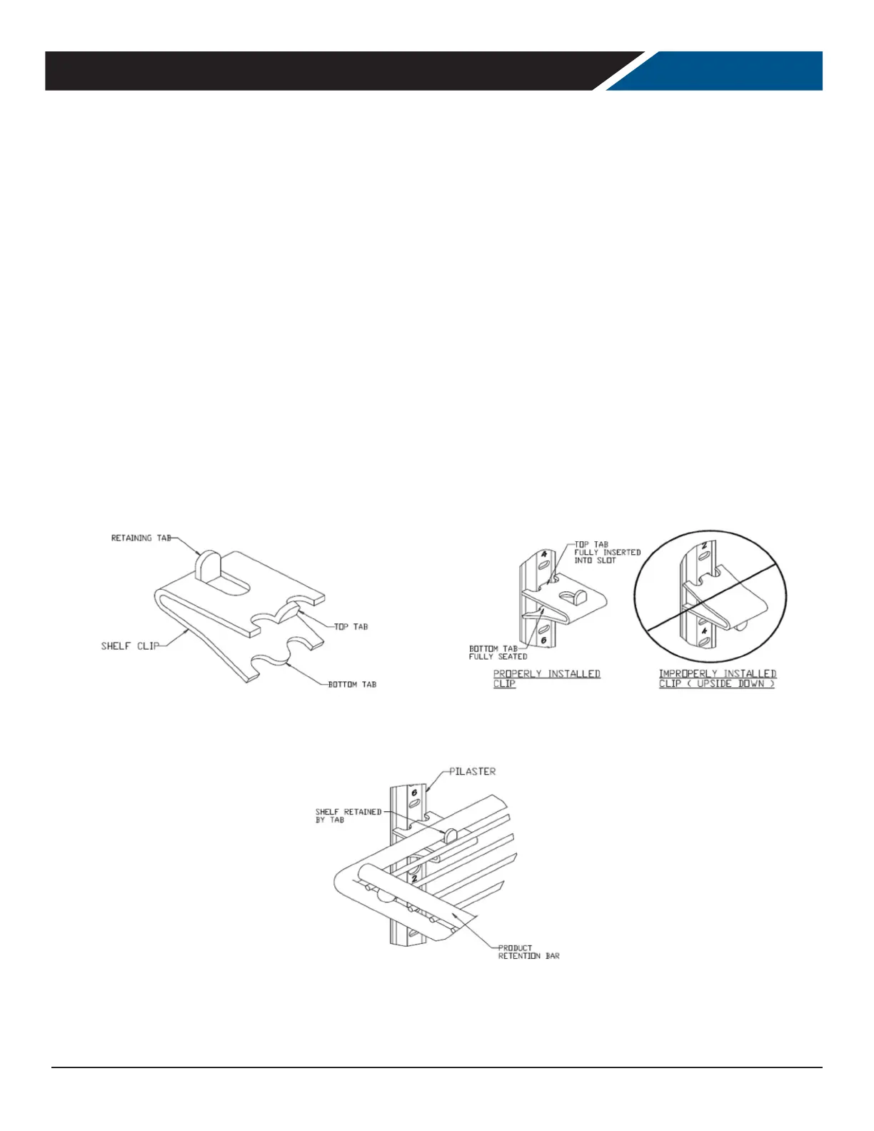 5. Install shelves onto clips with the product retention