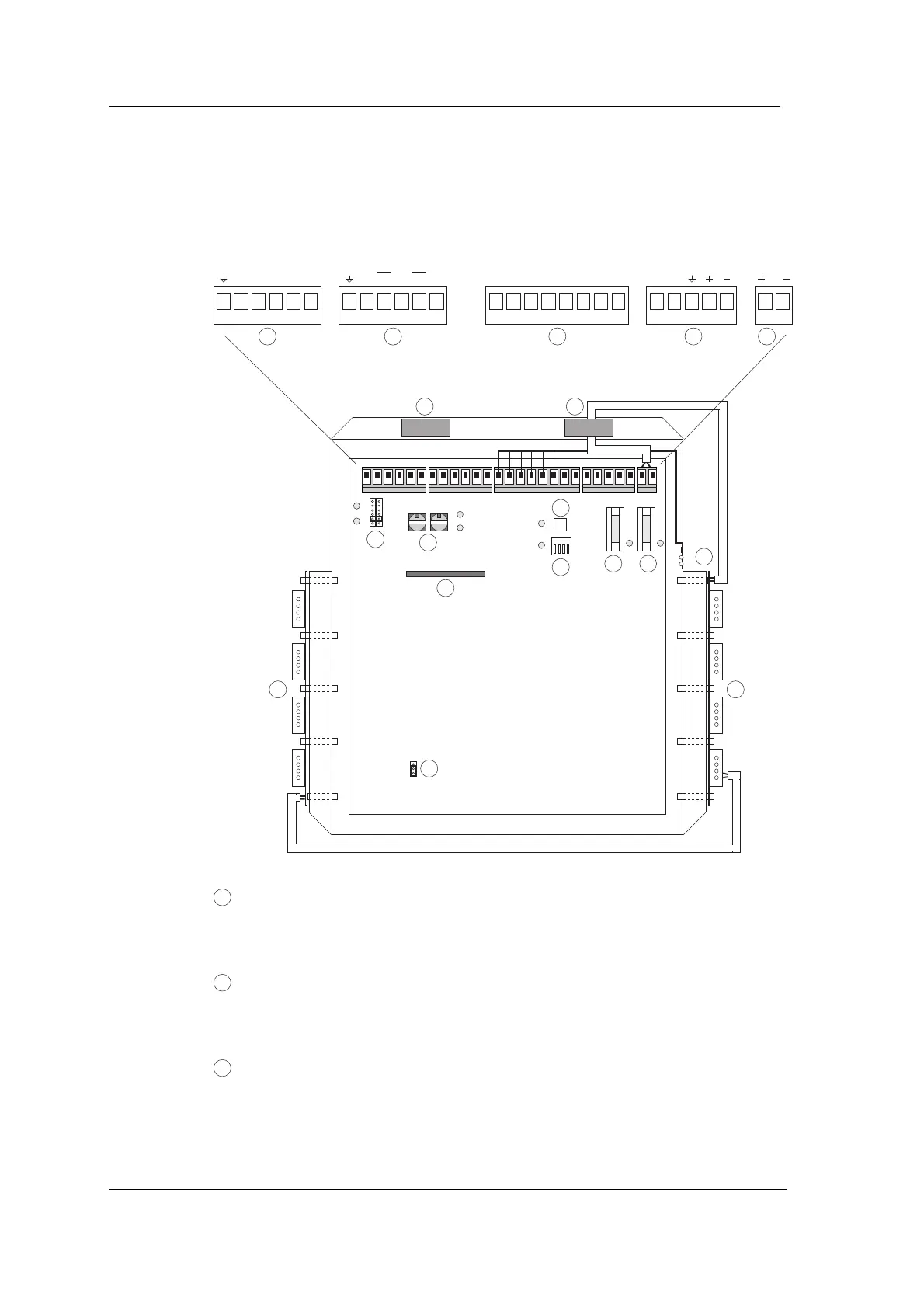 The following diagram shows the position of connectors, switches and