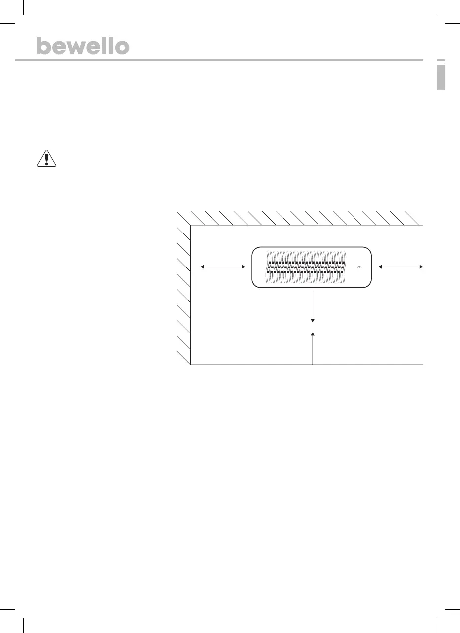 A felszerelési magasság legalább 200 cm kell legyen a padlótól mérve, a fűtőberendezést sarkoktól legalább 50 cm