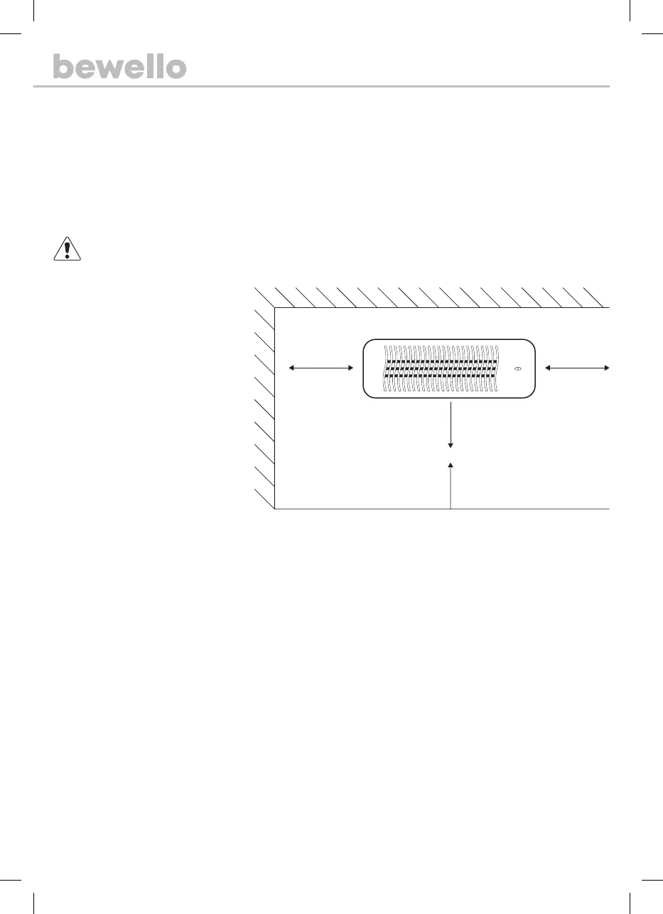 Instalační výška musí být minimálně 200 cm od podlahy, ohřívač musí být minimálně 50 cm od rohů a mezi spotřebičem