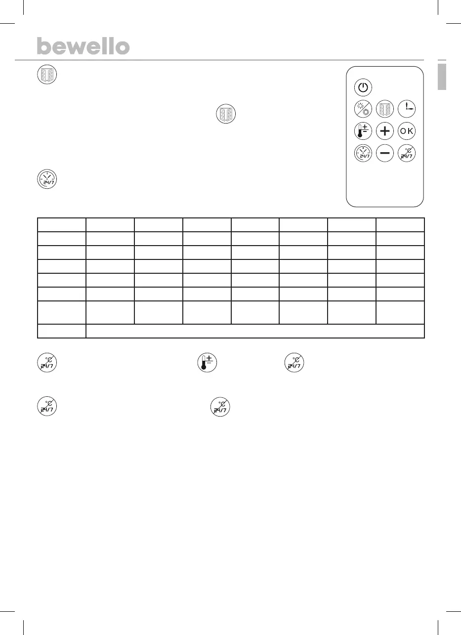 akkor a készülék magas teljesítmény módban folytatja a fűtést, ha alacsonyabb hőmérséklet volt beállítva vagy nem volt beállítva