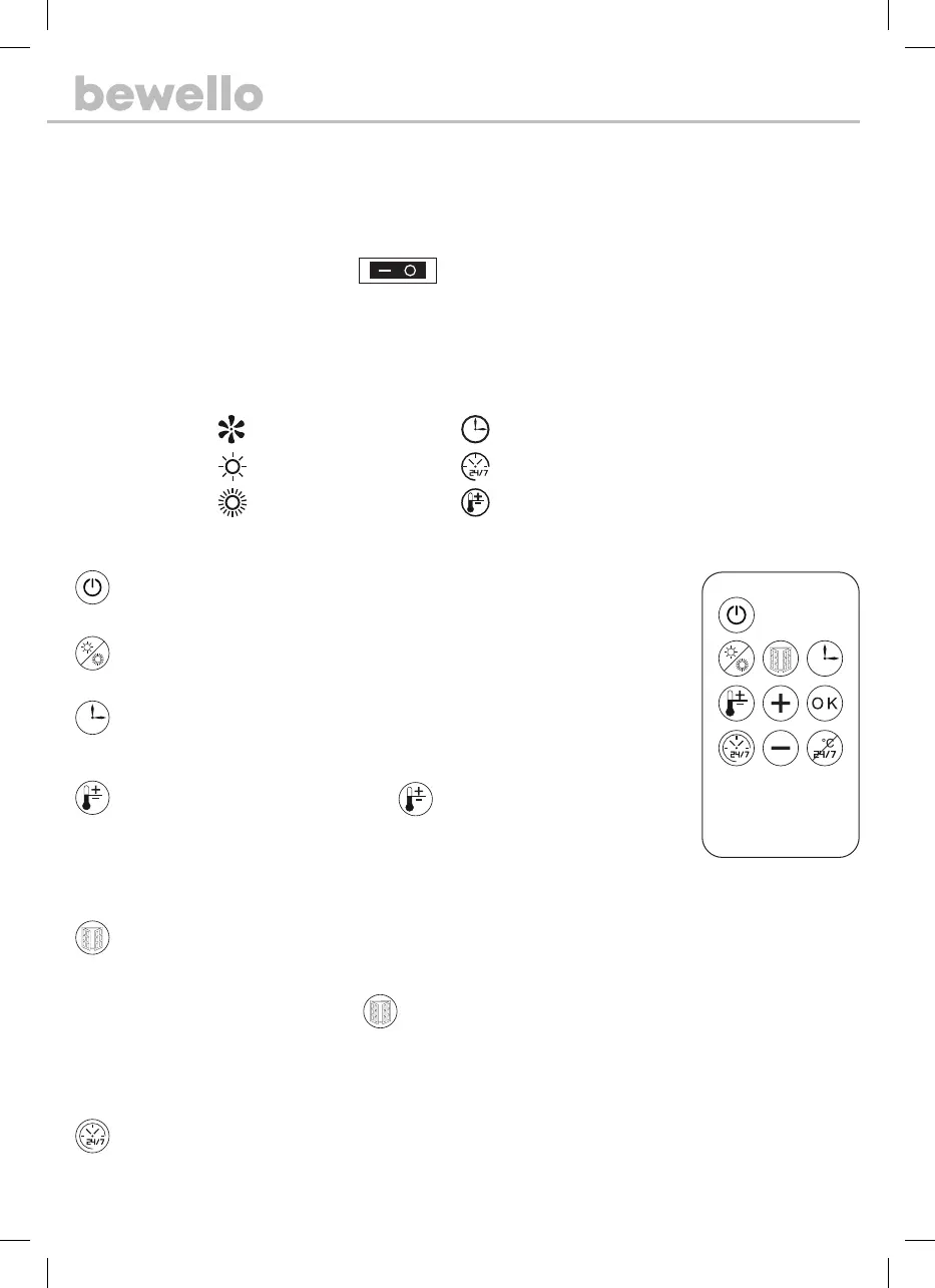 Heizung: Drücken Sie die Taste, um zwischen den Heizstufen zu wechseln. (niedrig, hoch,