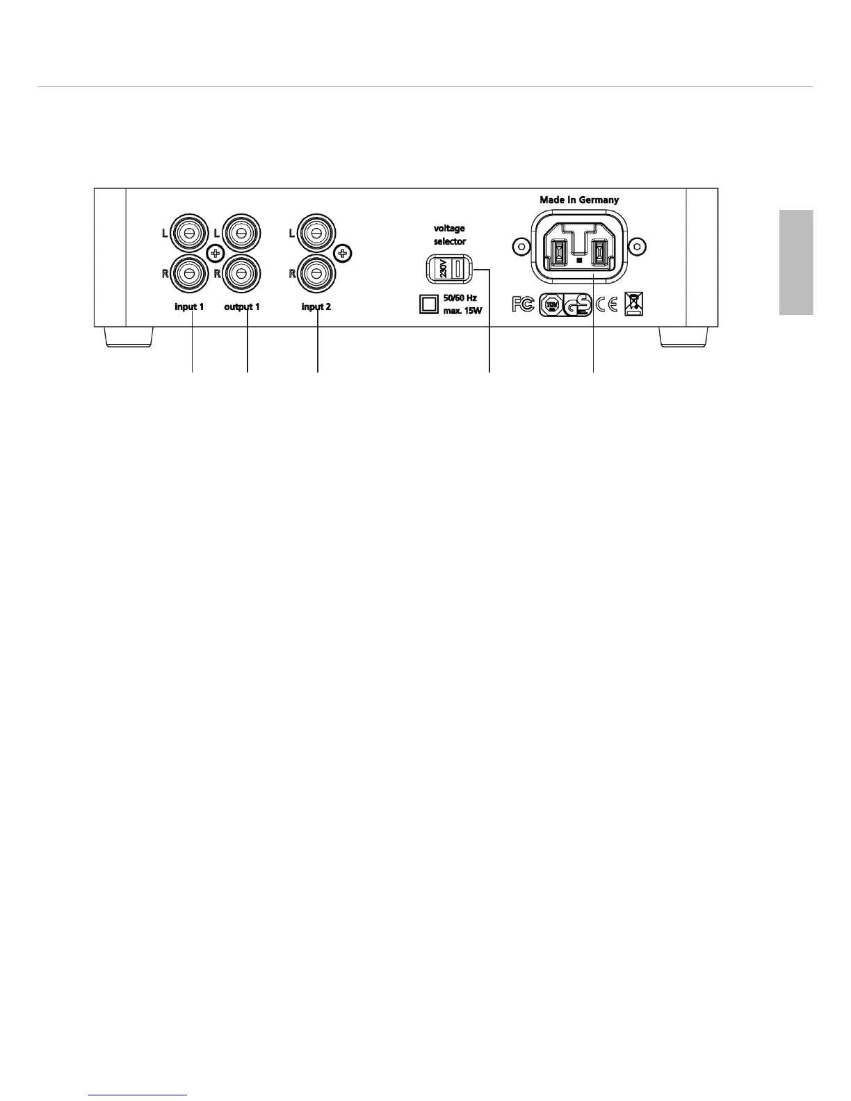 Input 1, stereo RCA phono sockets for signal sources with high levels.