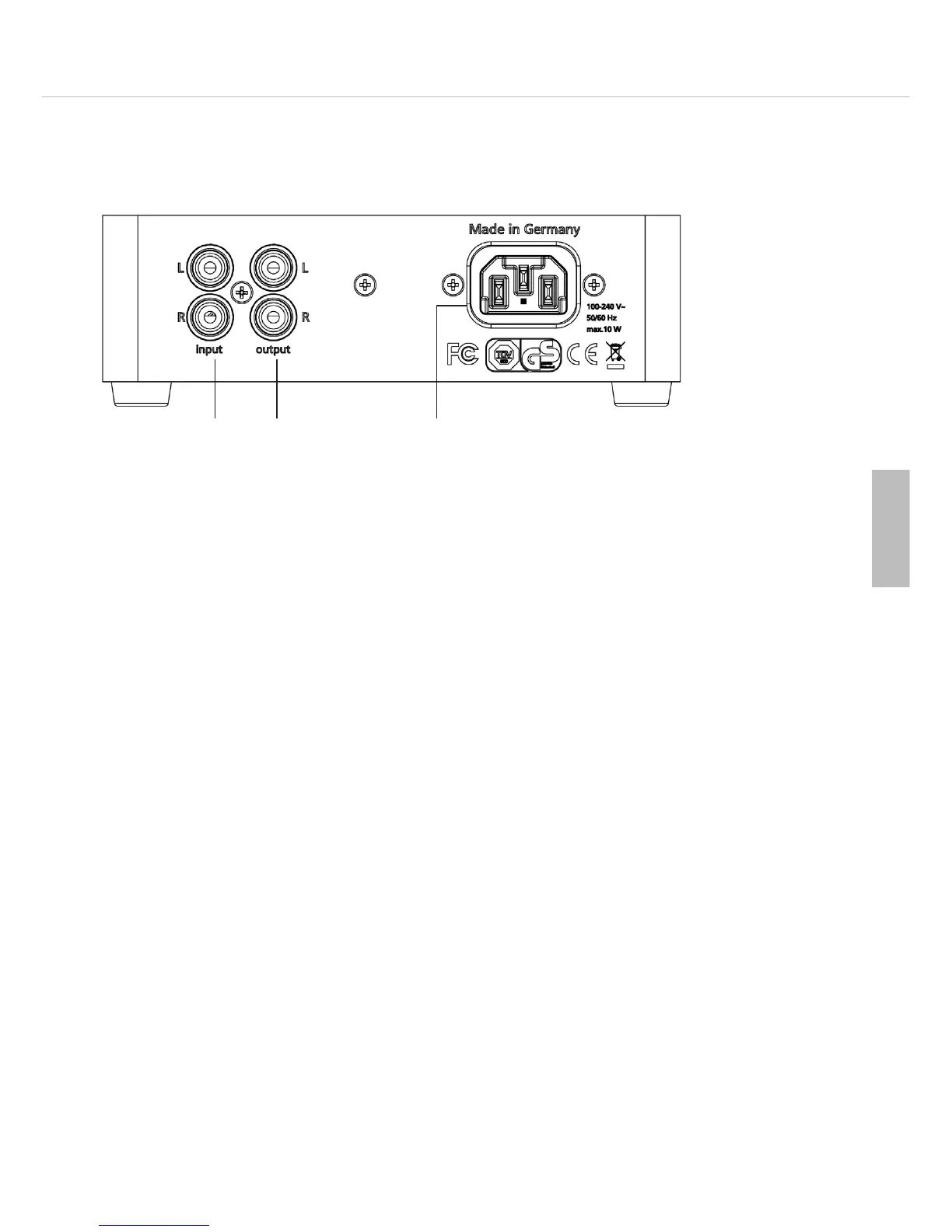 Entrada con paso en bucle (por cable), tomas cinch estéreo para fuentes de señales de alto nivel.