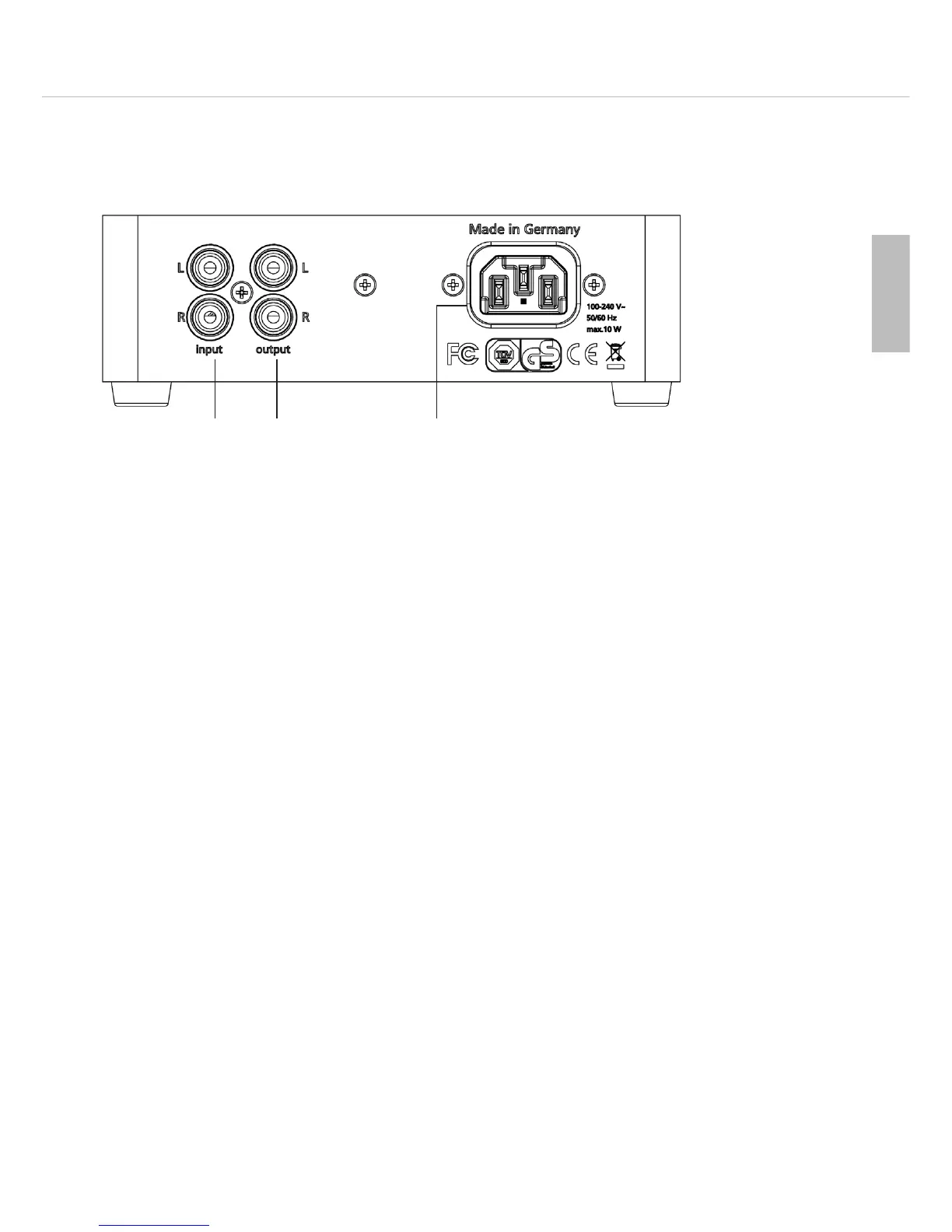 Looped-through input (hard-wired), RCA phono sockets for signal sources with high levels.