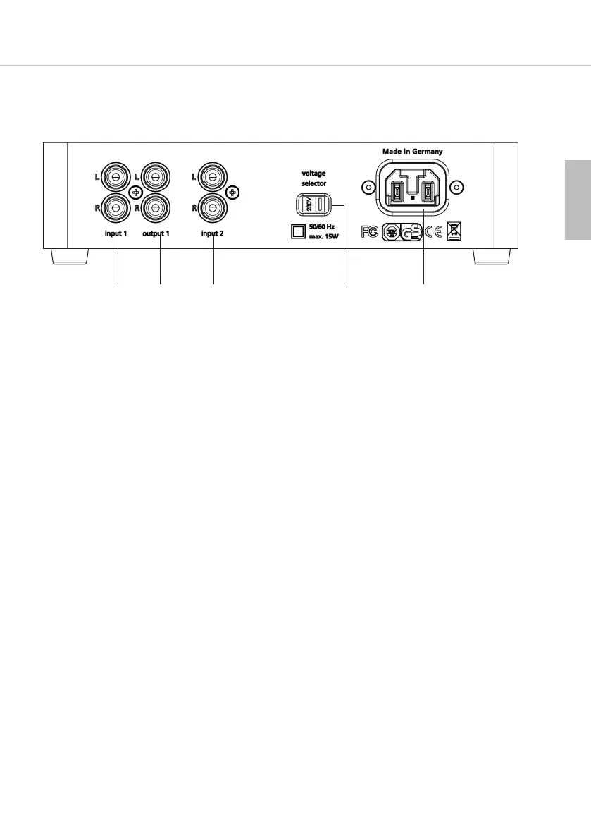 Input 1, stereo RCA phono sockets for signal sources with high levels.