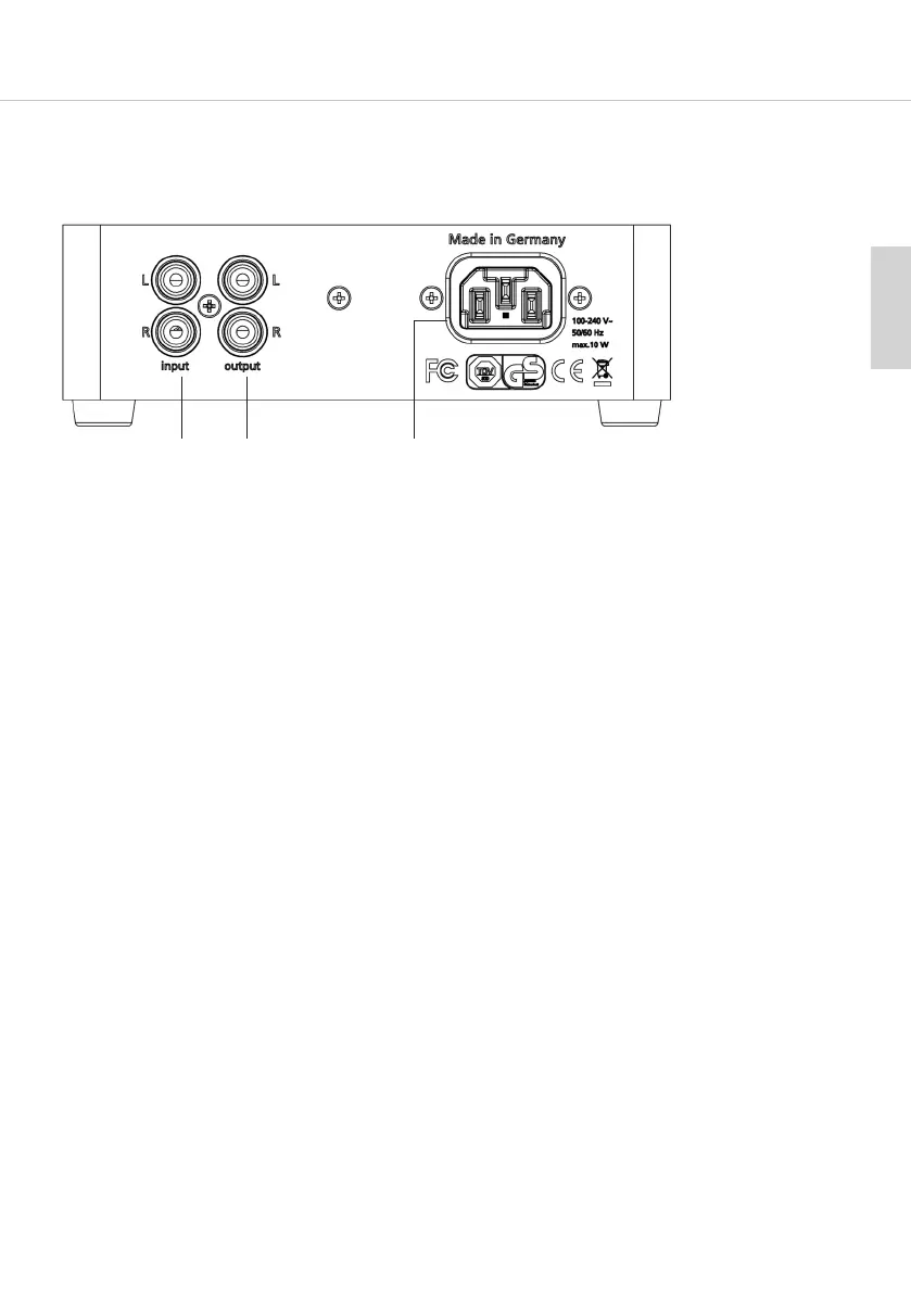 Looped-through input (hard-wired), RCA phono sockets for signal sources with high levels.