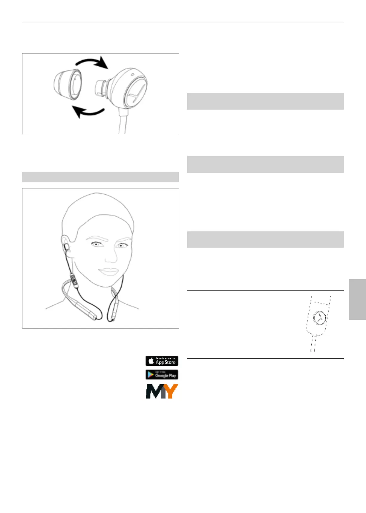 って、両方のイヤホンを耳に入れてください。