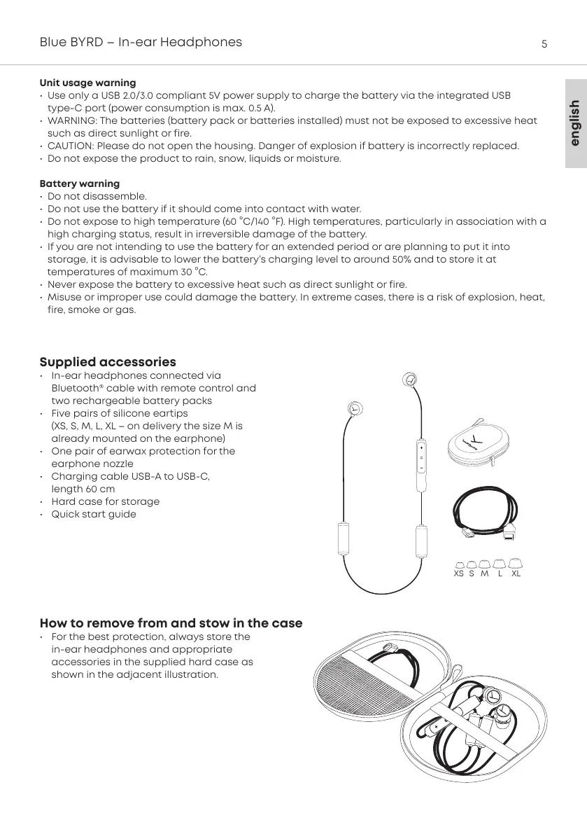 • Use only a USB 2.0/3.0 compliant 5V power supply to charge the battery via the integrated USB