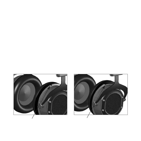 1. Place the lip of the ear pad in the notch at the top of the headphone casing.